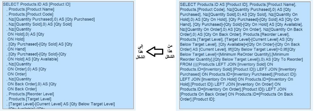 2. تم تحسين طريقة العرض حتى يسهل العمل مع جمل Sql بحيث أصبحت تظهر بشكل منسق كما بالصورة