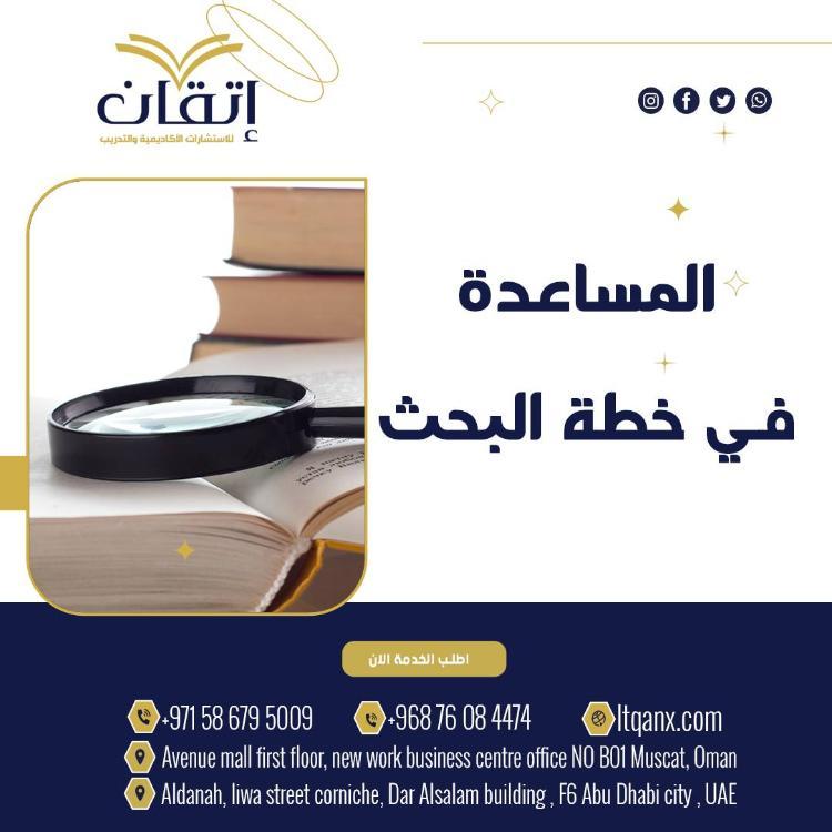 2. إن إعداد خطة البحث العلمي بالانجليزي يتطلب مهارة علمية ولغوية عالية، خاصة في ظل المنافسة الأكاديمية والجامعات الدولية، فكل كلمة يجب أن تكون محسوبة، وكل فكرة مصاغة بأسلوب أكاديمي رصين يعكس قوة البحث، في شركة اتقان للاستشارات الأكاديمية والتدريب نضمن لك صياغة احترافية خالية من الأخطاء، مدعومة بأسلوب علمي معتمد، مع إمكانية إعداد بروبوزال جاهز يزيد من فرص قبولك الأكاديمي ويمنح بحثك بداية قوية.