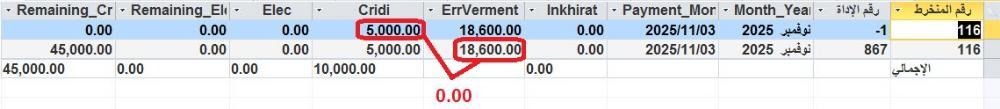 السلام عليكم اساتذتي الكرام ويبقى مد العون والمساعدة قائما من طرف الاساتذة الاجلاء لقوله ﷺ: والله في عون العبد ما كان العبدُ في عون أخيه. عندي مشكلة في الاستعلام Qry_loans_Step1 والمستمد من الوحدة النمطية fAdd_Observations علما ان التاريخ 2025/11/03 وخاصة عند العامل رقم 116يظهر مبلغ ErrVerment في Cridi حيث ان المعني لديه اقتطاع 5000.00 فيCridi ولديه 18.600.00 في ErrVerment مشكلة دفع.rar
