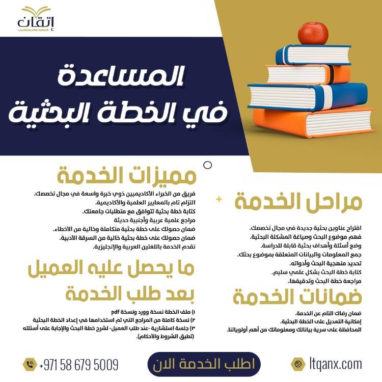تُقدّم شركة مكتبتك – شبكة المعلومات العربية خدمة أكاديمية متخصصة في اقتراح عنوان الرسالة ومساعدة الباحثين على اختيار عنوان البحث بدقة واحترافية وفق معايير البحث العلمي ومتطلبات الجامعات، ونعمل على تقديم عناوين بحوث علمية مقترحة أصيلة ومبتكرة تعكس مشكلة بحث واضحة وأهداف محددة، مع مراعاة المنهجية العلمية وقابلية الدراسة والتطبيق، بما يُسهم في تعزيز فرص القبول الأكاديمي وتحقيق التميّز البحثي منذ بداية الرحلة العلمية.