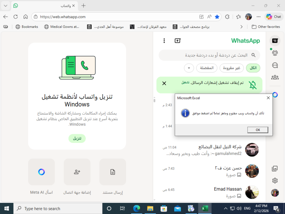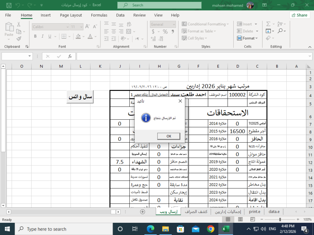 وعليكم السلام ورحمة الله وبركاته .. جرب هذا التعديل أخي الفاضل ، لأنني أستخدم تطبيق واتس اب سطح المكتب ، وليس واتس اب ويب .. كود إرسال مرتبات.xlsm