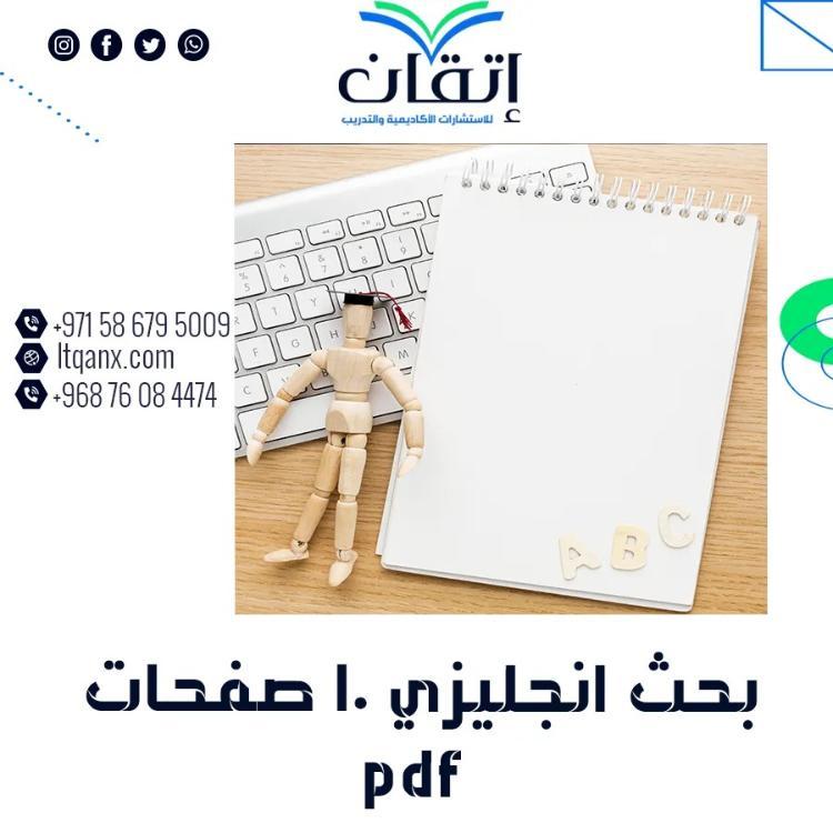 شركة إتقان للاستشارات الأكاديمية والتدريب تقدم خدمات متميزة في إعداد بحث إنجليزي جاهز pdf، وتساعد الطلاب على فهم كيف أكتب بحث باللغة الإنجليزية وتطبيق طريقة كتابة بحث بالانجليزي بشكل منهجي، كما يمكن الاستفادة من بحث إنجليزي جاهز قصير ونموذج بحث بالانجليزيpdf ضمن خطة بحث التي توفرها الشركة لتسهيل إعداد خطة البحث العلمي بطريقة احترافية ومنظمة.