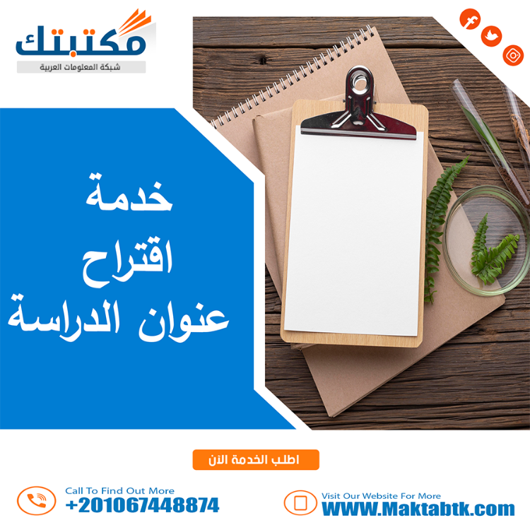 4. تُقدّم شركة مكتبتك – شبكة المعلومات العربية خدمة أكاديمية متخصصة في اقتراح مواضيع علمية حديثة تواكب المستجدات المعرفية ومتطلبات البحث العلمي المعاصر، نُوفّر للطلاب والباحثين مواضيع بحوث جامعية متنوعة تناسب مختلف التخصصات والمراحل الدراسية، مع تقديم عنوان في غلاف رسالة الماجستير مصاغة بدقة ومنهجية، تُساعدك على اختيار موضوع متميّز وقابل للدراسة ويُعزّز فرص القبول والنجاح الأكاديمي.
