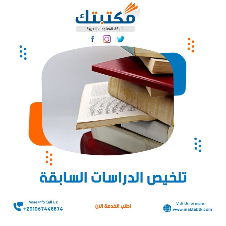 تُقدّم شركة مكتبتك – شبكة المعلومات العربية خدمات أكاديمية متكاملة تسهّل على الباحثين إعداد دراساتهم بمهارة واحترافية؛ حيث نوفر نموذج تلخيص الدراسات السابقة جاهز يساعدك على عرض المعلومات بشكل منظم وواضح، كما نوضح أشكال الدراسات السابقة في البحث العلمي لتتمكن من تحليلها وربطها بموضوع بحثك بدقة، ولضمان الوصول إلى أفضل المصادر، نوفر لك موقع للبحث عن دراسات سابقة موثوقة وحديثة تدعم بحثك العلمي بأقوى المراجع والمعلومات.