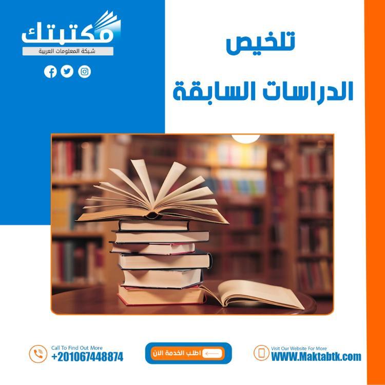 تُقدّم شركة مكتبتك – شبكة المعلومات العربية خدمة أكاديمية متخصصة في إعداد الدراسات السابقة في خطة البحث وفق منهجية علمية دقيقة تُبرز الفجوة البحثية وتدعم مشكلة الدراسة وأهدافها، نُساعد الباحثين في إعداد الدراسات السابقة في بحث التخرج بصياغة تحليلية مقارنة تُظهر أوجه الاتفاق والاختلاف بين الدراسات ذات الصلة، كما نوفر جمع وتحليل الدراسات السابقة العربية والأجنبية من مصادر علمية موثوقة، مع توثيق أكاديمي سليم وربطها بالإطار النظري، بما يُسهم في رفع جودة البحث وزيادة فرص قبوله وتميّزه الأكاديمي.