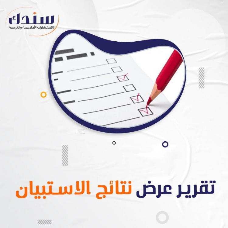 تقدّم شركة سندك للاستشارات الأكاديمية والترجمة خدمات احترافية لدعم الباحثين في تحليل البيانات وعرض النتائج البحثية بدقة، وتشمل هذه الخدمات خدمة التحليل الإحصائي ومناقشة النتائج لضمان تفسير علمي موثوق للبيانات، كما توفر مساعدة في عمل تحليل إحصاء شامل يساعد الباحثين على الوصول إلى نتائج دقيقة، وفيما يتعلق بـ تقرير عرض نتائج الاستبيان: تحليل البيانات، يتم تقديم طرق فعّالة لتحليل النتائج بطريقة شاملة، يتم أيضًا توضيح عرض نتائج الاستبيان مع تقديم نموذج تقرير نتائج الاستبيان ليكون مرجعًا عمليًا لكتابة التقارير بطريقة احترافية. https://www.sanadkk.com/blog/post/1370/%D8%AA%D9%82%D8%B1%D9%8A%D8%B1-%D8%B9%D8%B1%D8%B6-%D9%86%D8%AA%D8%A7%D8%A6%D8%AC-%D8%A7%D9%84%D8%A7%D8%B3%D8%AA%D8%A8%D9%8A%D8%A7%D9%86.html