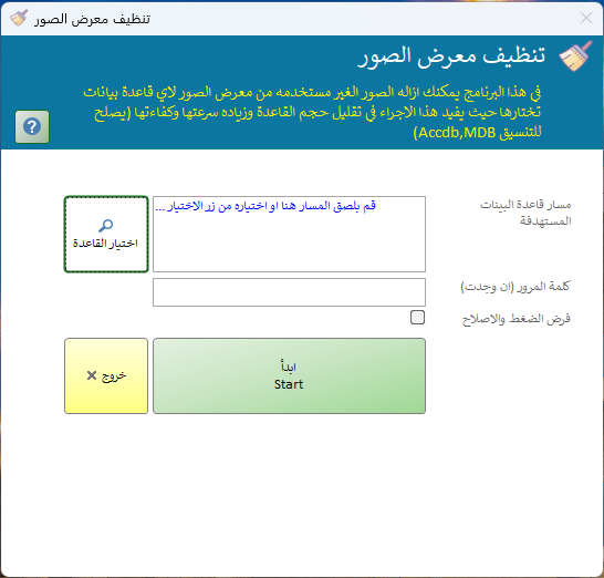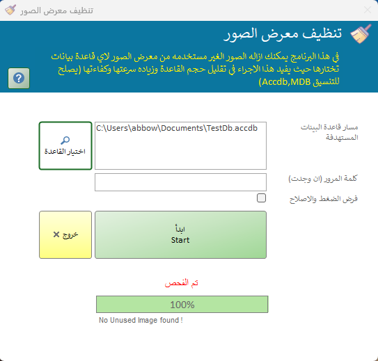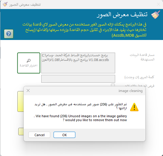 🧹 أداة تنظيف الصور – الحل الذكي لمشكلة تضخم قواعد بيانات Access بسبب تراكم الصور في عالم تطبيقات Microsoft Access، تعتبر إضافة الصور إلى النماذج والتقارير أمرًا شائعًا جدًا، خصوصًا عندما يرغب المطور في تصميم واجهة جذّابة ومنظمة بصريًا. تُستخدم الصور عادةً في الأزرار، الشعارات، الرموز التوضيحية، الخلفيات، وحتى في عناصر التحكم الخاصة بالعروض البصرية. لكن مع مرور الوقت وتعدد عمليات التطوير والتحديث، تبدأ مشكلة خفية وخطيرة في الظهور… وهي تراكم الصور غير المستخدمة داخل قاعدة البيانات. 📸 كيف تبدأ المشكلة؟ خلال عملية تصميم وتعديل النماذج أو التقارير، يقوم المطور أحيانًا بتجربة أكثر من صورة أو شعار، أو ربما يستبدل صورة بأخرى جديدة لتحسين المظهر. لكن Access – بحكم طريقة تخزينه للموارد – لا يحذف الصور القديمة تلقائيًا من قاعدة البيانات. وبالتالي تظل تلك الصور غير المستخدمة محفوظة داخل جداول النظام، وتحديدًا في جدول MSysResources، حتى بعد حذف العنصر الذي كان يستخدمها. ومع مرور الوقت، تتراكم هذه الصور بشكل كبير جدًا، خصوصًا في المشاريع التي تشهد تحديثات مستمرة أو تتضمن عددًا كبيرًا من النماذج والتقارير. قد لا يلاحظ المستخدم أو المطور ذلك في البداية، لكن النتيجة تظهر لاحقًا بشكل واضح من خلال تضخم غير مبرر في حجم ملف القاعدة. ⚠️ ما هي آثار تراكم الصور على قاعدة البيانات؟ زيادة حجم الملف بشكل كبير: قد تتضاعف أحجام قواعد البيانات إلى أضعاف حجمها الطبيعي بسبب وجود صور غير مستخدمة. في بعض الحالات، يمكن أن يتجاوز حجم القاعدة الحد الأقصى المسموح به أو يؤدي إلى بطء في الأداء العام. بطء في الأداء عند الفتح أو الحفظ: كلما زاد حجم ملف القاعدة، أصبح فتحها أو حفظها أبطأ. العمليات التي كانت تستغرق ثوانٍ قد تبدأ في استهلاك وقت أطول بكثير. احتمال تلف القاعدة أو ظهور أخطاء: قواعد Access الكبيرة والمعقدة أكثر عرضة للأخطاء الداخلية، خصوصًا عند العمل في بيئة متعددة المستخدمين أو عبر الشبكة. الصور الزائدة تمثل عبئًا إضافيًا على الذاكرة الداخلية للملف (MDB أو ACCDB). صعوبة النسخ الاحتياطي أو النقل: القواعد الكبيرة تحتاج وقتًا أطول للنسخ والتحميل، وقد تواجه مشاكل أثناء النقل بين الأجهزة أو عبر البريد الإلكتروني. تأثير سلبي على تجربة المستخدم: في النظم التي تعتمد على سرعة الاستجابة وسلاسة التشغيل، أي تأخير أو ثقل في القاعدة يمكن أن يسبب انزعاجًا للمستخدمين أو العملاء النهائيين. 🔍 لماذا يصعب تنظيف هذه الصور يدويًا؟ رغم أن الصور المخزنة في MSysResources يمكن رؤيتها بطريقة غير مباشرة، إلا أن التعرف على الصور المستخدمة فعليًا في النماذج والتقارير عملية معقدة جدًا. فهي تتطلب المرور على عشرات وربما مئات العناصر داخل القاعدة، وفحص خصائص كل عنصر لمعرفة ما إذا كان يستخدم صورة معينة أم لا. وهذا العمل اليدوي غير عملي، ويحتاج وقتًا طويلًا وخبرة تقنية متقدمة جدًا في Access. كذلك، حذف الصور من جدول النظام يدويًا دون دراسة دقيقة قد يؤدي إلى كسر الروابط الداخلية، مما يتسبب في فقدان بعض الصور المستخدمة فعلاً داخل الواجهة أو التقارير. وبالتالي، لا توجد طريقة آمنة وسهلة لتنظيف هذه الملفات يدويًا. 💡 الحل: أداة تنظيف الصور هنا يأتي دور أداة تنظيف الصور التي تم تطويرها خصيصًا لحل هذه المشكلة بطريقة ذكية وآمنة. بدلاً من محاولة التعامل مع المشكلة يدويًا أو الاكتفاء بضغط القاعدة بشكل سطحي، تعمل الأداة على تحليل قاعدة البيانات المستهدفة بالكامل وتحديد الصور غير المستخدمة بدقة متناهية. تقوم الأداة بعملية فحص داخلية دقيقة لجميع النماذج، التقارير والعناصر، لاستخراج جميع الصور التي يتم استخدامها فعلاً داخل الواجهة. بعد ذلك، تجري مقارنة ذكية مع الصور المخزنة فعليًا داخل الجدول النظامي المسؤول عن الموارد، لتحديد الصور التي لم تعد مستخدمة. وبمجرد تحديد الصور الزائدة، تقوم الأداة بحذفها بطريقة فنية تضمن الحفاظ على سلامة باقي المرفقات و