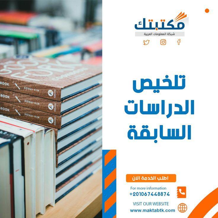 تُقدّم شركة مكتبتك – شبكة المعلومات العربية خدمات أكاديمية متكاملة لدعم الباحثين في إعداد الدراسات السابقة باحترافية عالية؛ حيث نوفر نموذجًا للدراسات السابقة في البحث العلمي مصاغًا وفق المعايير الأكاديمية المعتمدة، كما نساعدك على فهم كيفية كتابة الدراسات السابقة في رسالة الماجستير بأسلوب منهجي يبرز الفجوة البحثية ويعزز قوة الدراسة، ونوفر أيضًا نموذج تلخيص الدراسات السابقة بطريقة واضحة ومركزة تسهّل عرض النتائج وربطها بموضوع البحث.