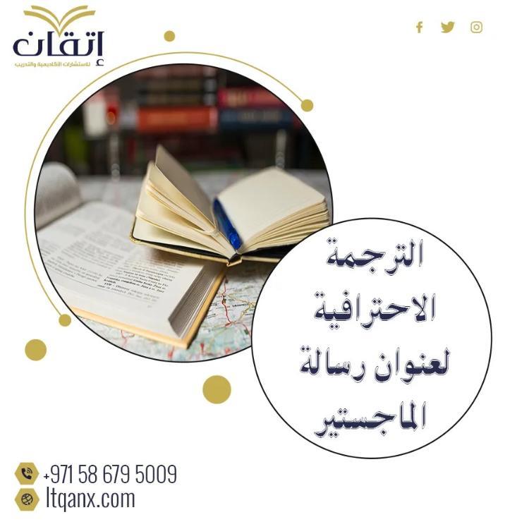 شركة إتقان للاستشارات الأكاديمية والتدريب تعد من الشركات الرائدة في تقديم خدمات الترجمة الأكاديمية والبحثية، تقدم الشركة خدمات ترجمة احترافية للمحتوى الأكاديمي، بما في ذلك ترجمة عنوان رسالة الماجستير، مع ضمان دقة المعنى والأسلوب بما يتناسب مع السياق الأكاديمي، تركز الشركة على مساعدة الباحثين في إبراز أبحاثهم بطريقة احترافية، بالإضافة إلى ذلك، تقدم خدمات ترجمة عالية الجودة لمختلف المستندات الأكاديمية بأسعار معقولة، مثل سعر ترجمة الصفحة في الإمارات، مما يجعلها الخيار الأمثل للطلاب والباحثين؛ إذا كنت تبحث عن مكتب ترجمة في أبوظبي أو مكتب ترجمة معتمد قريب منك، فإن "إتقان" توفر هذه الخدمة بتسهيلات مميزة، حرصها على تقديم خدمات موثوقة وسريعة يجعلها الشريك الأكاديمي المثالي.