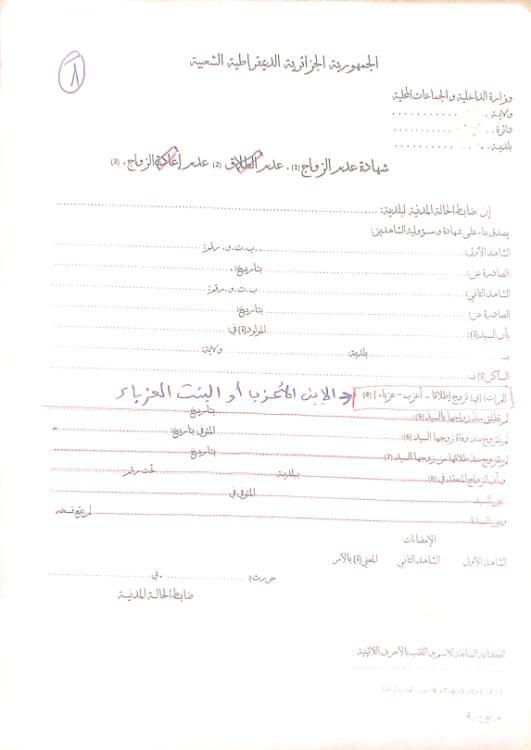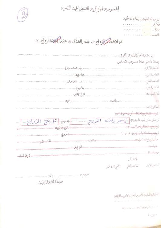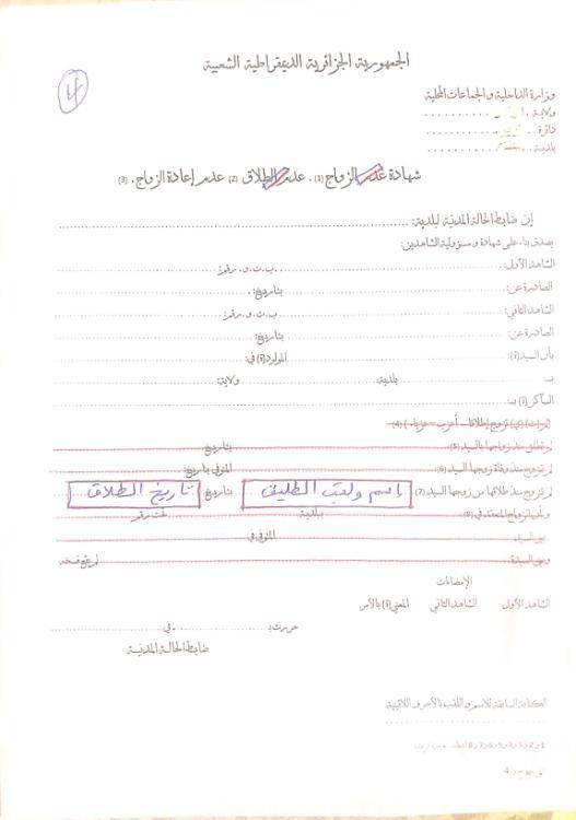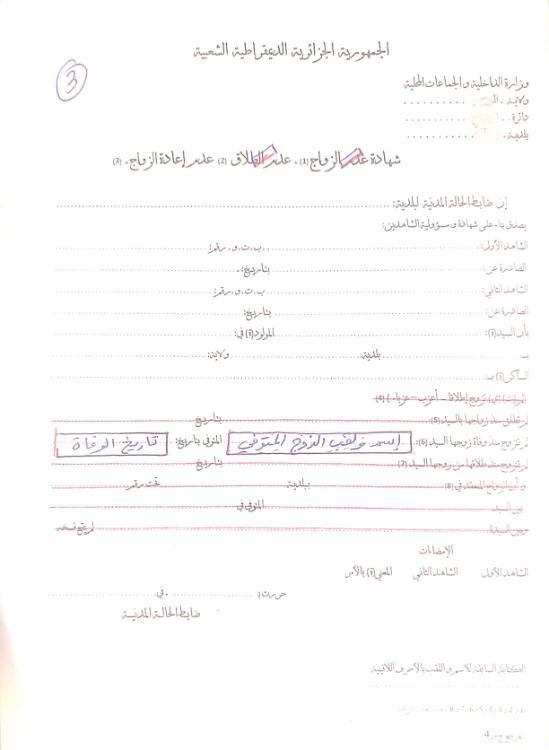كلامك صحيح استاذ اما بخصوص عدم الزواج فانها تخص الابناء فقط فوق 18 سنة لاحظ الصور الاربعة : 1/في حالة العزوبية تخص الابناء(لم تتزوج اطلاقا اعزب -عزباء) 2/ في حالة عدم الطلاق تخص الزوجة والزوجين الغير منفصلين(لم تطلق منذ زواجها بالسيد) 3/في حالة عدم اعادة الزواج وهنا تخص الزوجة المطلقة (لم تتزوج منذ طلاقهامن زوجها) - الارملة المتوفي زوجها (لم تتزوج منذ وفاة زوجها) فيه ملاحظة : اظطريت لتعديل اسماء في الجداول للفرنسية تفاديا للمشاكل في الاكواد Database27.rar -