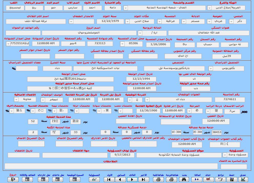 السلام عليكم ورحمة الله وبركاتة عندي برنامج اكسس وصادفت عندي هذة المشكلة مع موظف واحد فقط وهي ظهور معلومات الموظف بكتابة مبهمة وايظا لا استطيع حذف معلومات الموظف يظهر عندي "لم يتم العثور على مفتاح البحث في اي سجل" وهذا الملفات المرفقة 1- صورة معلومات الموظف 2- رسالة لم يتم العثور على مفتاح البحث في اي سجل