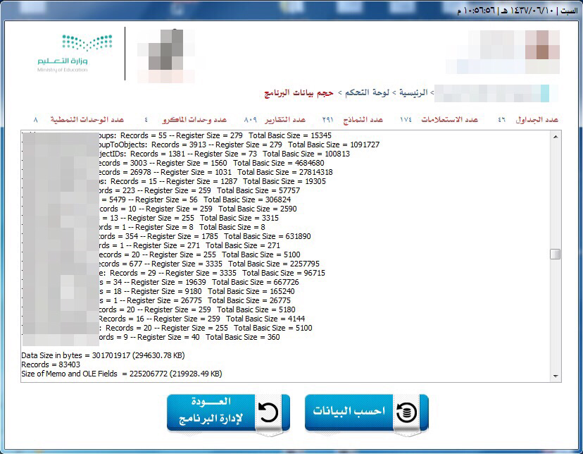 ذكرتني بمثال عندي يحسب حجم البيانات داخل قاعدة البيانات حجم البيانات في البرنامج.rar -