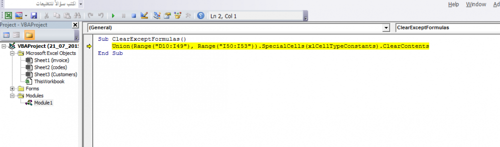 عايز مواشر الماوس عند اختيار الصنف في العمود C ينتقل مباشر الى عمو د D الكمية وعند كتابة الكمية ينتقل مباشر الا عمود C الصنف وهكذا حتى سطر 54