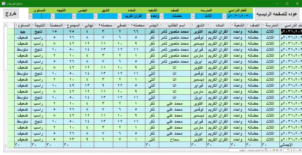 للافاده العام 2009ـ2010 لايوجد درجات اما العام 2030 فقد قمت بتعبئة الدرجات هذا من اجل المقارنه