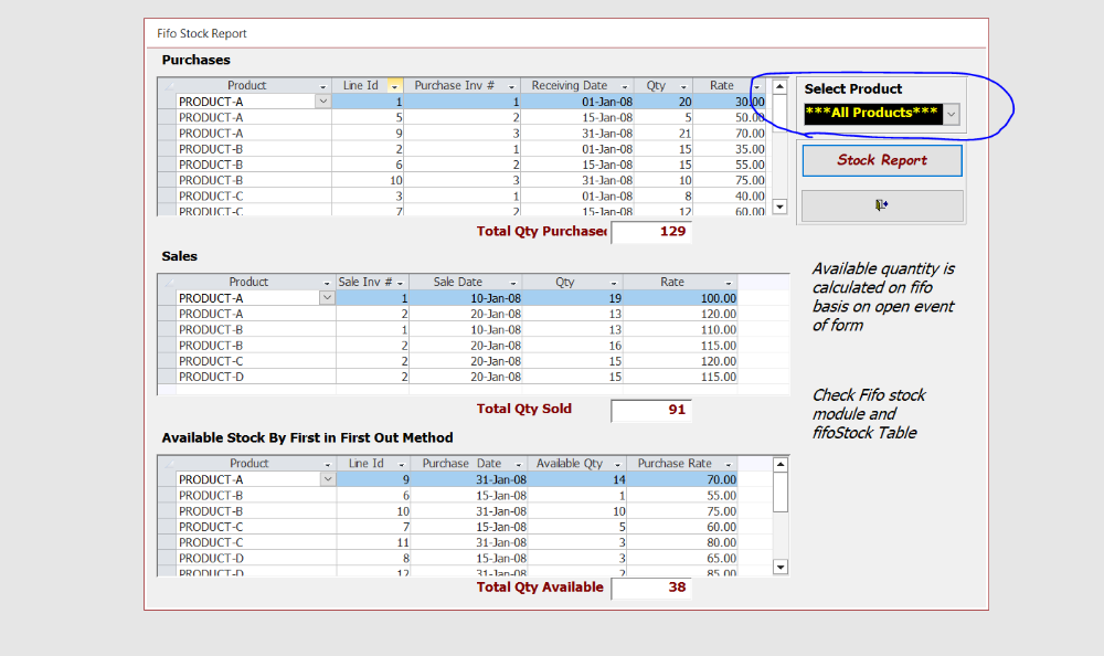 بحثت كثيرا ووجدت ملف تم ارفاقه في هذا المنتدى من الأخ أبو خليل بس للأسف فشلت اطبق المثال على البرنامج الخاص بي يا ريت من اهل الخبرة تطبيق هذا المثال على البرنامج الخاص بي وشرح الطريقه إن امكن وجزاكم الله خيرا FifoStock1111.mdb -
