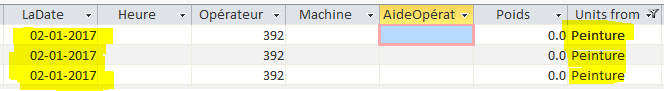 السلام عليكم ورجمة الله تعالى وبركاته عندي في النموذج "frmProduction" جميع مربعات التحرير والسرد تشتغل بشكل رائع إلا واحد بالطبع- الوحدة "cboUnits" حيث أنه وعند اختيار "Peinture" لا يقوم بإضهارها في النموذج الفرعي رغم أنها موجودة لا أدري ما سبب هذه المشكلة ولا أين أخطأت في الكود ملاحظة :من فضلك قم باختيار التاريخ من 01/01/2017 حتى تظهر جميع النتائج بارك الله فيكم وفي علمكم Search.zip