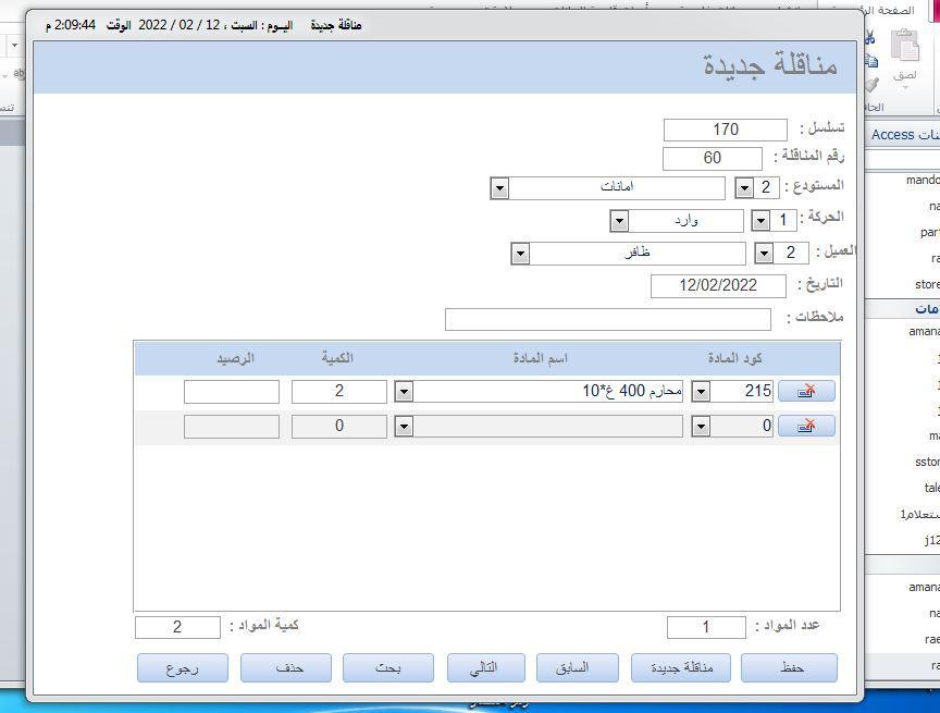 11. السلام عليكم ورحمة الله في النموذج عند ادخال كود المادة لا يعطي اسم المادة وعند اختيار اسم المادة لا يعطي الكود فما الخطأ...؟ الفكرة تعبئة تلقائية عند اختيار احد المعلومات ارجو المساعدة 2022.accdb