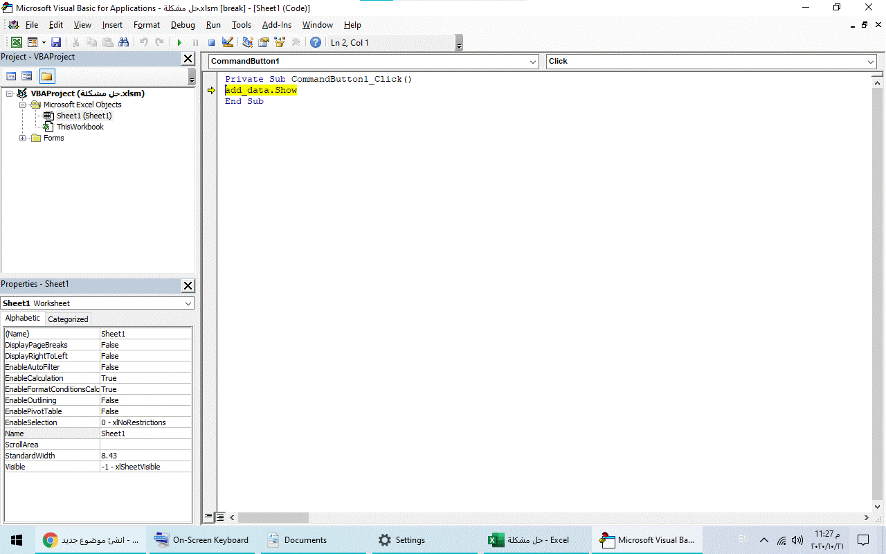 8. مساعدة في حل مشكلة فتح يوزر فورم عند الضغط علي زر الفتح يظهر خطاء حل مشكلة.xlsm
