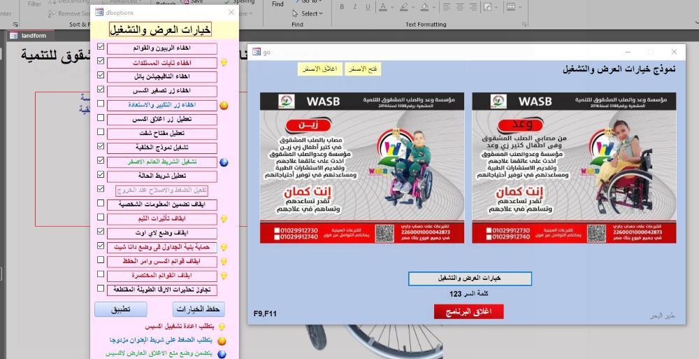 على قددر علمي اقدم لكم هذه الهدية للتحكم فى خيارات العرض والتشغيل كما هو موضح فى الصورة المرفقة اضفت نموذج ارضية وشريط ادوات عائم يمكنتك تطويره يلاحظ ان خاصية autocompact معطلة فى كلا الحالتين يمكنك تفعيلها تقبلوها منى خالصة لوجه الله تعالى وارجوا امدادى بخصائص اخرى حبث انى حديث عهد باكسس ولا تنسوا التقييم والرأي ولفت نظرى لاى خطأ كلمة السر 123 يمكنك تعديلها dboptions.rar