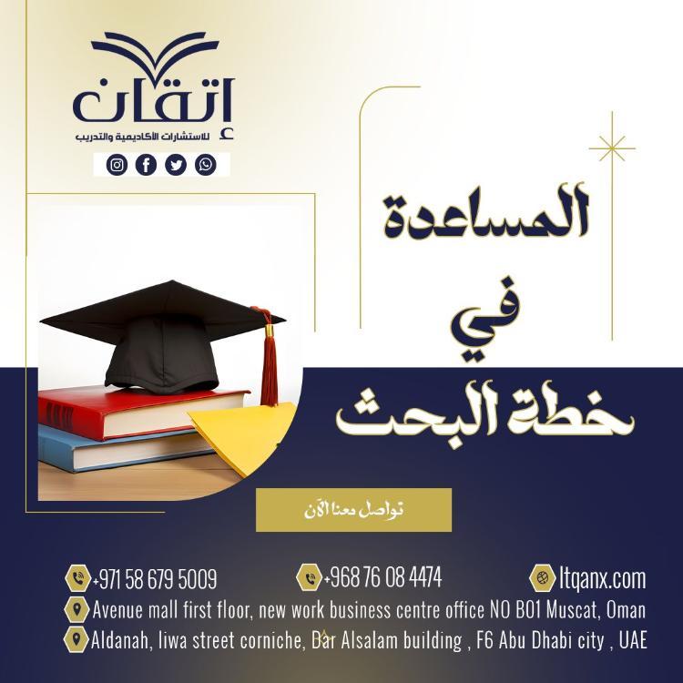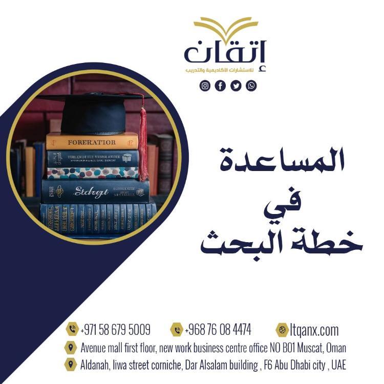 تسهل شركة إتقان على الطلاب والباحثين إعداد الخطط البحثية لجميع المراحل الأكاديمية بشكل احترافي، كما نقدم خدمة إعداد خطة بحث في الامارات وفق المعايير الجامعية الحديثة ومتطلبات المشرفين، نركز على تنظيم المشكلة البحثية، الأهداف، الدراسات السابقة، والمنهجية العلمية، كما نقدم إرشادات حول جمع البيانات وتحليلها، هدفنا مساعدة الباحث على تقديم خطة بحث دقيقة وسهلة التطبيق، مع إتقان تصبح كل خطة بحث منظمة وقابلة للاعتماد الأكاديمي.