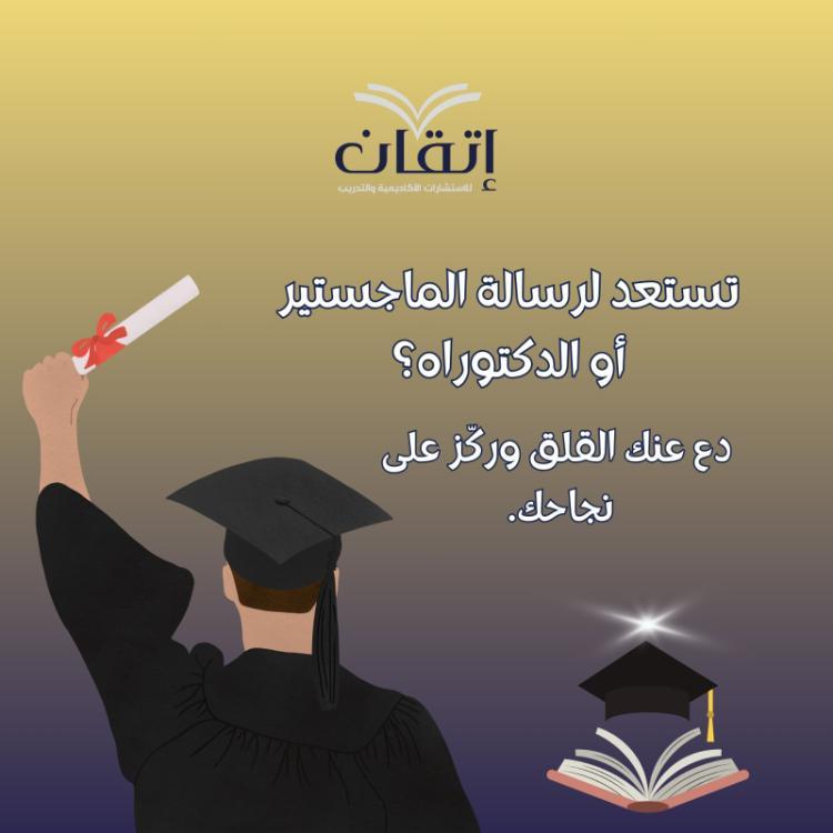 تتميز شركة إتقان بالخبرة في تقديم خدمات للباحثين في الدراسات العليا؛ حيث نعد خطة بحث الرسائل العلمية بما يتوافق مع متطلبات الجامعات واللجان، كما نقدم دعمًا متخصصًا لإعداد خطة اطروحة دكتوراه متكاملة العناصر، تشمل مشكلة البحث، الأهداف، الدراسات السابقة، والمنهجية، نركز على جودة المحتوى ودقة التفاصيل العلمية، هدفنا تمكين الباحث من تقديم عمل أكاديمي احترافي، يتم تقديم جميع الخدمات بأسلوب منظم وواضح، مع إتقان يصبح إعداد خطة الرسالة أو الأطروحة أمرًا سلسًا ومضمون النتائج.