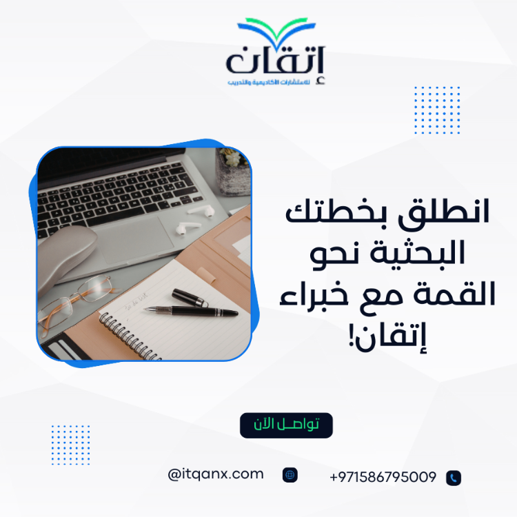 تواكب شركة اتقان التطورات الأكاديمية الحديثة من خلال تقديم خدمات احترافية؛ حيث نقدم خطة البحث العلمي بالانجليزي للباحثين الراغبين في التميز الدولي، كما نوفر بروبوزال جاهز متكامل العناصر لتسهيل بدء البحث العلمي، نحرص على جودة المحتوى ودقة التفاصيل الأكاديمية، كما نساعد الباحث على تنظيم أفكاره وصياغة البحث بأسلوب واضح واحترافي، هدفنا تمكين الباحثين من تقديم خطة بحث قوية وجاهزة للاعتماد، خدماتنا تجمع بين الخبرة الأكاديمية والمرونة في التطبيق.