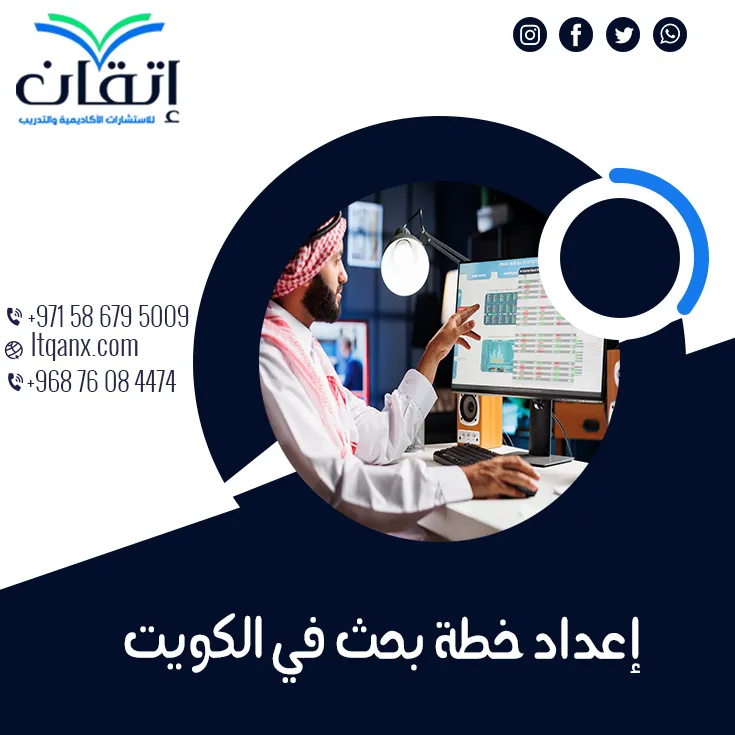 إذا كنت تبحث عن مكتب إعداد خطة بحث في الكويت، فإن إتقان للاستشارات الأكاديمية والتدريب تعتبر الخيار الأمثل لك، نحن متخصصون في تقديم خدمات إعداد خطة بحث تتوافق مع شروط الأكاديميات الكويتية والمتطلبات الأكاديمية العالمية، لدينا فريق من المستشارين الأكاديميين الذين يملكون خبرة واسعة في كتابة وتنسيق الخطة البحثية بشكل احترافي؛ حيث تغطي كافة جوانب البحث من تحديد الموضوعات إلى تحليل البيانات. نحن في اتقان نوفر لك شروط خطة البحث PDF التي يمكنك الاستفادة منها في تنفيذ البحث بأفضل صورة، من خلال استخدام تقنيات كتابة حديثة واحترافية، نساعدك في ضمان أن تكون خطة البحث الخاصة بك دقيقة، منظمة، وسهلة التنفيذ؛ إذا كنت بحاجة إلى مساعدة في اختيار الموضوع أو تحديد منهج البحث، نحن هنا لتقديم الدعم الكامل في إعداد خطة بحث في الكويت.
