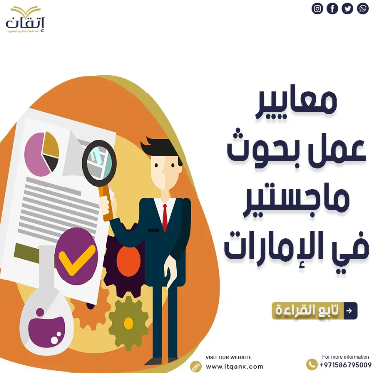 الحصول على تقييم أكاديمي متميز، إتقان للاستشارات الأكاديمية والتدريب تفخر بتقديم خدمات كتابة بحوث الماجستير في الإمارات، نحن نركز على أن تكون الأبحاث شاملة، دقيقة، ومبنية على أسس علمية راسخة. من خلال مساعدتنا في إعداد بحوث ماجستير، يمكن للطلاب ضمان أن تكون رسائلهم موثوقة ومبنية على أسس بحثية متينة، نحن نراعي متطلبات الجامعات الإماراتية الخاصة بـ شروط رسالة الماجستير في الإمارات ونحرص على الالتزام بكل معايير عمل بحوث الماجستير المتفق عليها، في اتقان نقدم لك كافة المساعدة في اختيار الموضوع المناسب، هيكلة البحث بشكل صحيح، واستخدام المنهجيات البحثية الحديثة، إن مساعدة إتقان تعد طريقك لضمان جودة بحث ماجستير استثنائية تحظى بالقبول الأكاديمي والتقدير العالي.