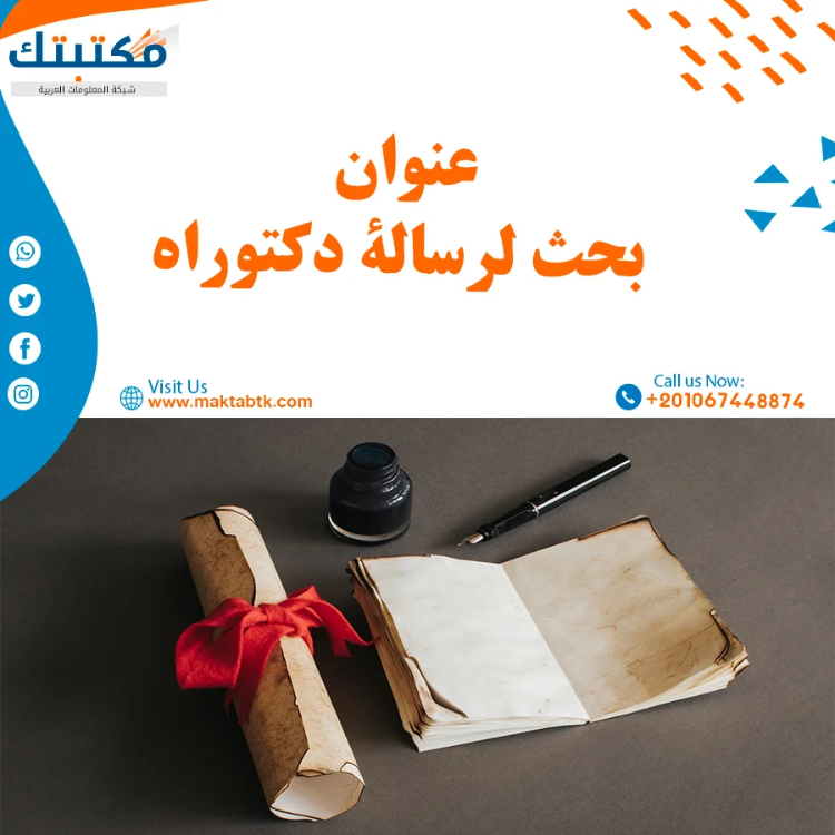 تُقدّم شركة مكتبتك – شبكة المعلومات العربية خدمة أكاديمية متخصصة في اقتراح وصياغة عنوان بحث دكتوراه وفق معايير الأصالة والعمق العلمي ومتطلبات الجامعات، نُساعد الباحثين على اختيار عناوين تصلح رسائل ماجستير دقيقة ومبتكرة، مع توفير عناوين بحوث علمية متنوعة وحديثة تناسب مختلف التخصصات، وتراعي وضوح المشكلة البحثية وقابليتها للدراسة، بما يُعزّز فرص القبول والتميّز الأكاديمي منذ بداية المشوار البحثي.