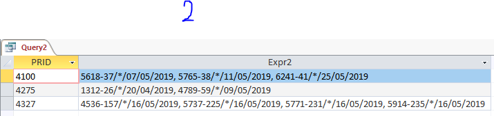 code الصورة الاولي - هي للاستعلام الاول الاساسي اللي اريد تجميع الخليه المسماه ... في خليه واحده code صورة الثانيه - هي نتيجة الداله وتجميع الخليه طبقا لمتغير PRID الصورة الثالثه - هي ما اريد ولكن النتايج المظلله هي نتائج خاطئة لا اريد وجودها اريد اضافة متغير اخر مع المتغير الموجود لفلترة النتائج طبقا للتاريخ -