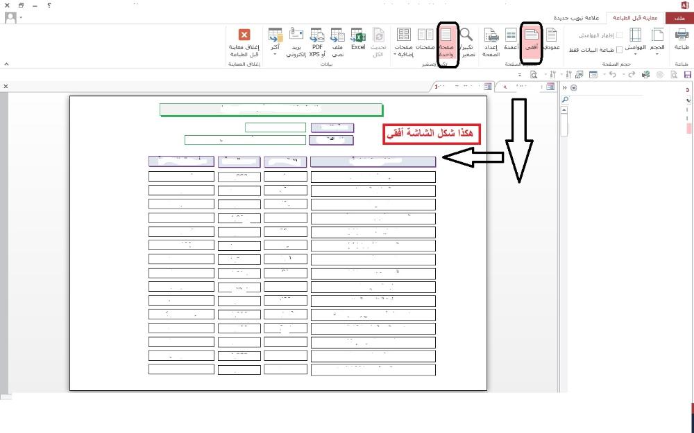 السلام عليكم عندي ملف أكسس به جدول حسابات أريد تحول الطباعة من عرضي إلى طولي أين أجد هذا الخيار في أكسس 2013 الملف عندي عرضي