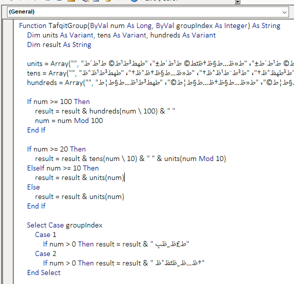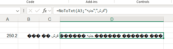 4. عند تشغيل الدالي لتحويل الأرقام إلي كلمات تظهر علامات استفهام أو حروف غير مفهومة حسب المرفق ارجو المساعدة