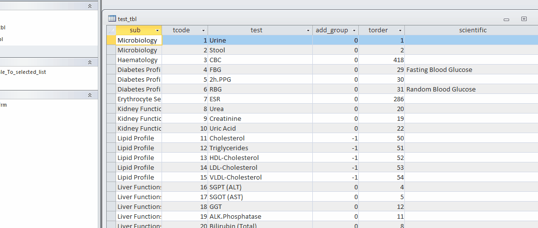 Me.testlist.RowSource = " SELECT DISTINCT test_tbl.sub  FROM test_tbl  GROUP BY test_tbl.sub, test_tbl.add_group, test_tbl.test, test_tbl.tcode,test_tbl.normal_type  HAVING (((test_tbl.sub) Like ""*"" & [Forms]![reservation_frm]![S1]) AND ((test_tbl.add_group)=True)) ORDER BY test_tbl.sub;"