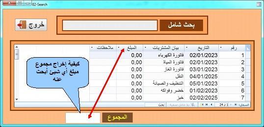 BRAHIM Ben aissa قام بنشر سبتمبر 30 قام بنشر سبتمبر 30 كيفية إظهار مجموع مبلغ أي شيئ أبحث عنه في خاصية بحث شامل مثال : هذا نموذج رئيسي مرتبط بنموذج فرعي عبارة عن قائمة بيانات مصدرها جدول مصروفات مرتبط باستعلام بحث شامل وسريع . الصورة توضح ذلك... برنامج مصروفات خاص 2007.rar