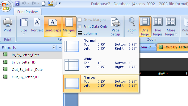 ابو يامن قام بنشر يوليو 24, 2008 قام بنشر يوليو 24, 2008 ماذا حصل بعد إنزال 2007 ؟ أرجو عمل التالي بعد التنزيل : 1- فتح البرنامج 2- فتح التقرير المطلوب بعد الدخول عليه من خلال نموذج الإستعلام و البحث و عمل إظهار 3- من خلال القوائم أعلاه قم بإختيار Narrow من حقل margins كما هو موضح بالصورة المرفقة إعطيني النتائج و أعتذر عن التأخير بالرد ... Narrow.bmp