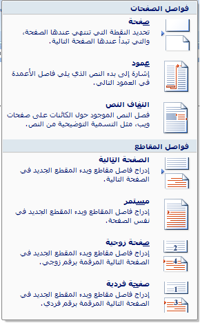 الطلحي قام بنشر يناير 9, 2011 قام بنشر يناير 9, 2011 الصفحة هي الصفحة العادية ويقوم وورد بإضافة صفحة جديدة عند انتهاء الصفحة التي تتم فيها الكتابة أو يمكنك إدراج صفحة يدويا أما المقطع فيمكنك اعتباره كمستند منفصل عن المستند الرئيسي بحيث يمكنك تغيير خصائصه على انفراد مثل الهامش ورأس وتذييل الصفحة وغير ذلك، ويمكن أن يكون المقطع جزء من صفحة أو صفحة أو أكثر من ذلك.