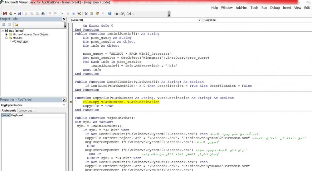 والله أنا لا أود أتعابك معي أكثر من اللازم ولكن المكتبة المشار إليها مضافة وظاهرة في قائمة مراجع الملف ولكن مازال التوقف في الكود يظهر كما هو مع العلم أني أستخدم أوفيس 2013 بنواه 32