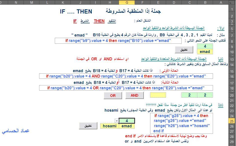 ' Cells(57, H)---  الرقم57هنا يدل على رقم السطر الذى سينفذ فيه الكود